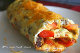 You can make these spiral slices to wrap and freeze as well. This really is a very versatile recipe. Add in any meats and veggies you choose. Spinach would be great, mushrooms, asparagus, whatever you like in an omelet. Instructions are on page 231 of Low Carbing Among Friends. Be sure to purchase the book if you haven't already. Click the photo of the cover to go to the ordering site. You need to get cooking before the next edition comes out!